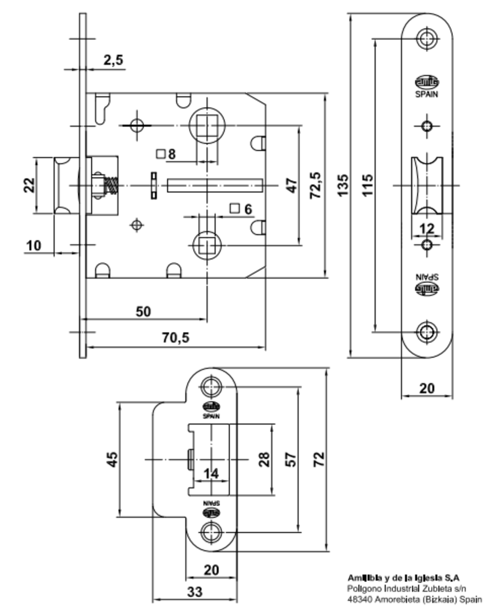 Amig Механізм міжкімнатний WC мод.2000 - 50/47 латунь