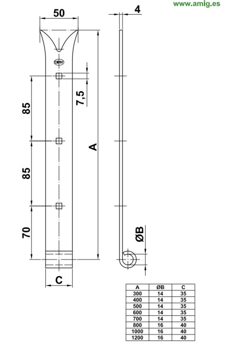 Amig Петля накладна мод.4200 - 700x35x4 mm Ø14