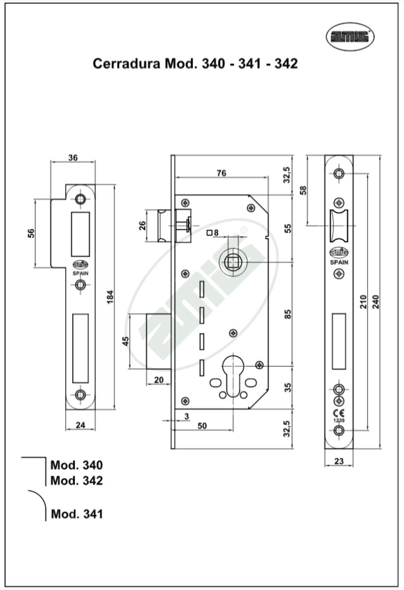 Amig Замок 1 ригель мод.340 хром матовий + циліндр 60 мм