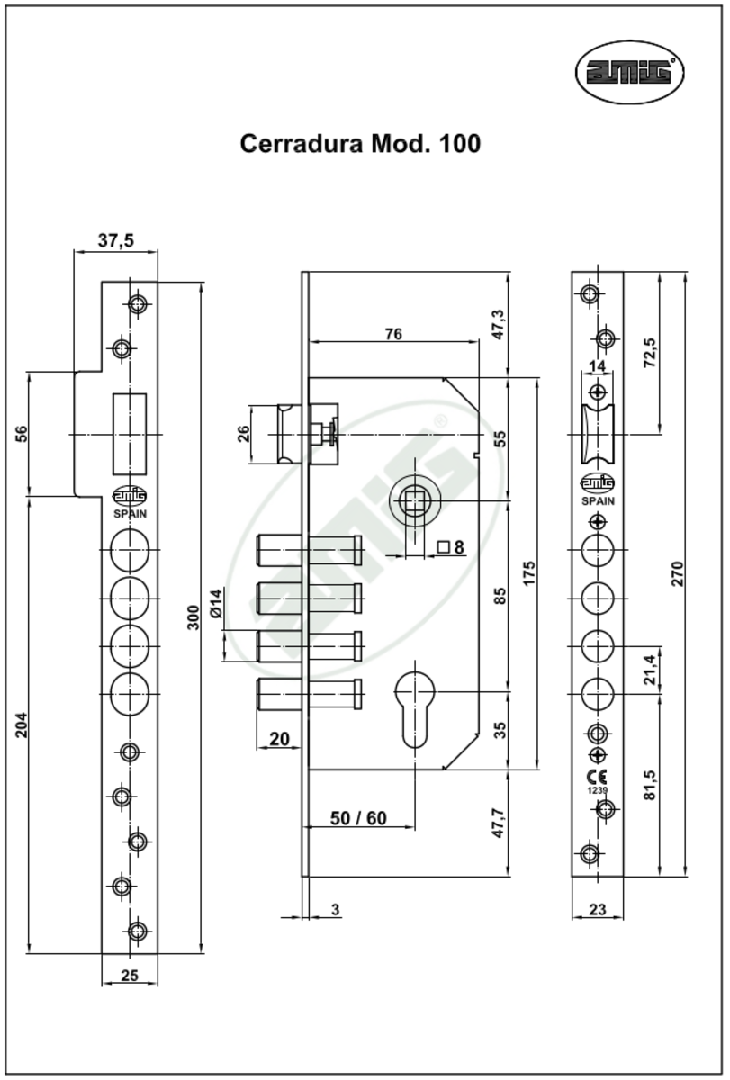 Amig Замок 4 ригеля мод.110 - 50/85 матовий нікель + броня м.31/33